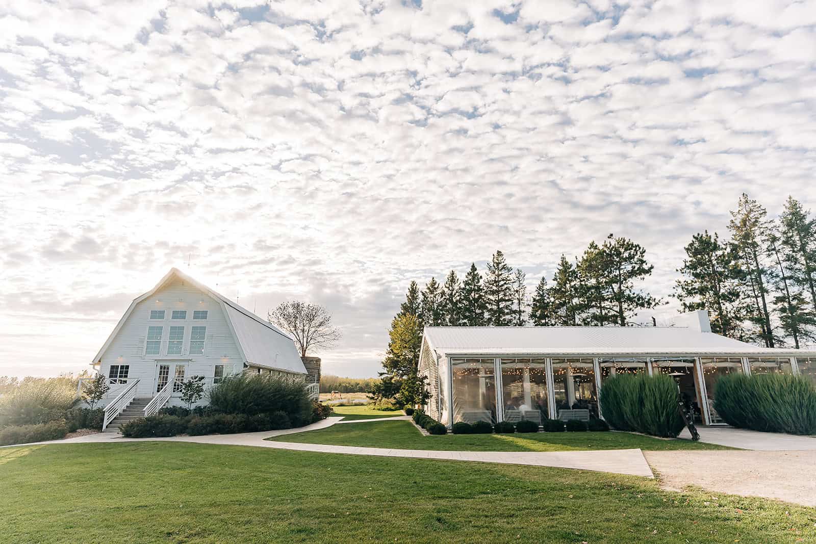 Picture this: a stunning white barn glowing in golden hour light. Forty acres of peaceful Minnesota countryside stretch around you. Your guests are gathered on rustic wooden benches. And you’re about to marry your favorite person. Welcome to Ivory North, where country calm meets modern design in the most magical way.