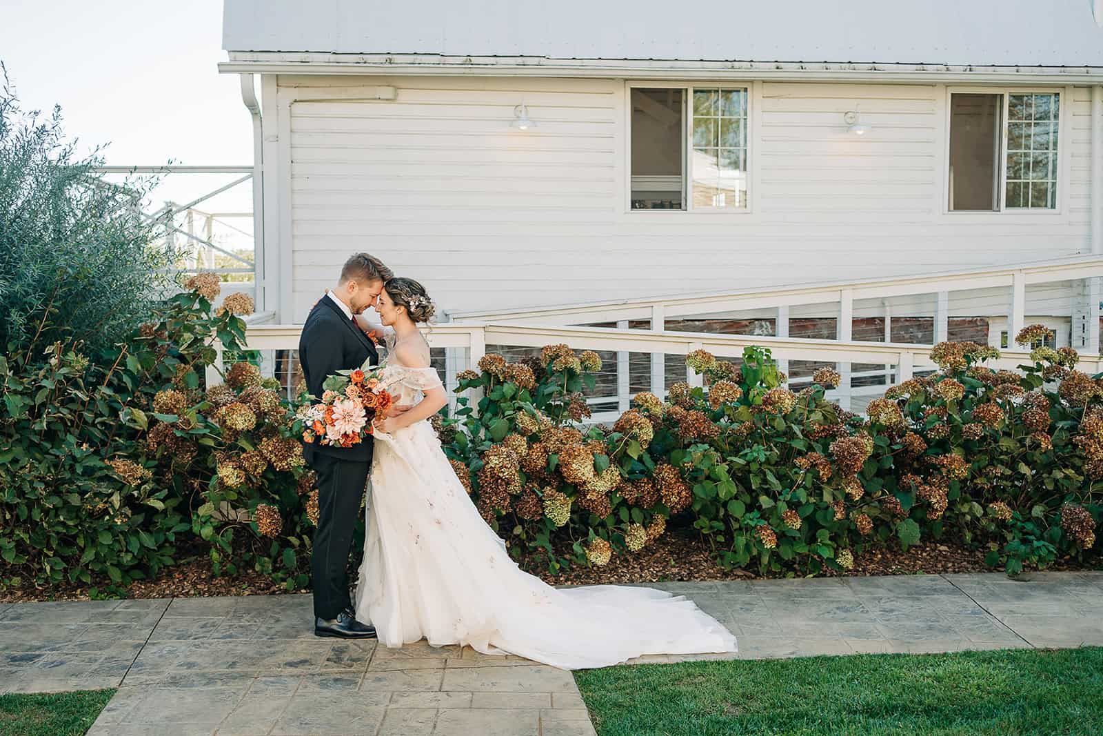 The barn’s exterior serves as a clean, high-fashion backdrop. It’s perfect for those editorial-style portraits. The white walls make colors pop beautifully!