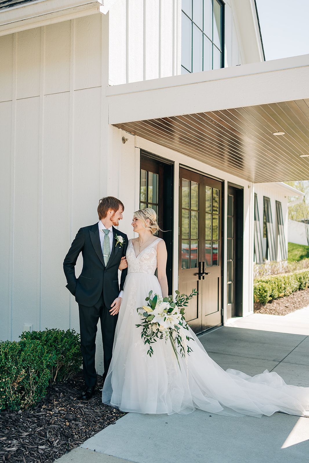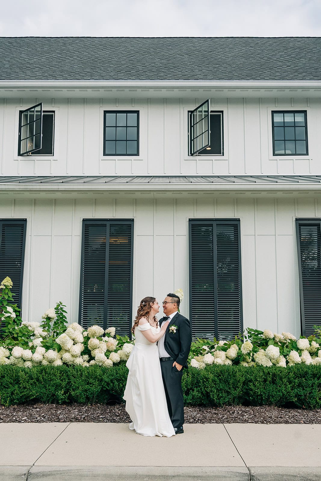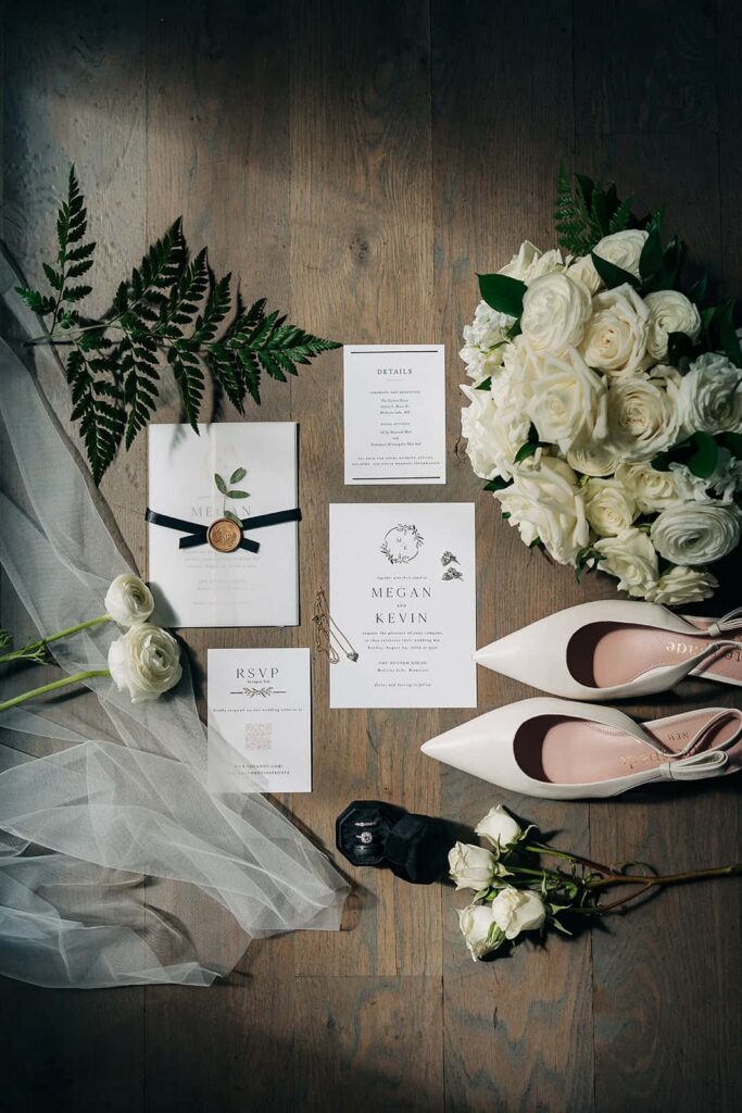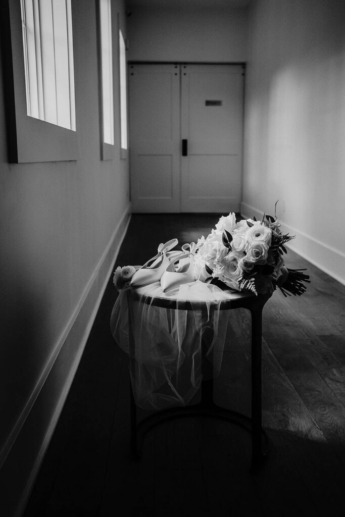 Pristine white exterior walls create an editorial photographer’s dream! Clean lines make florals and dresses pop beautifully. As a result, your bridal party photos will look magazine-worthy.