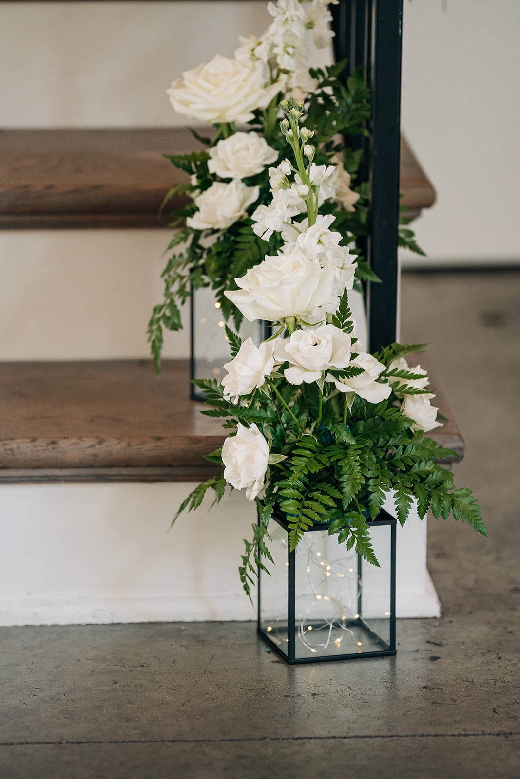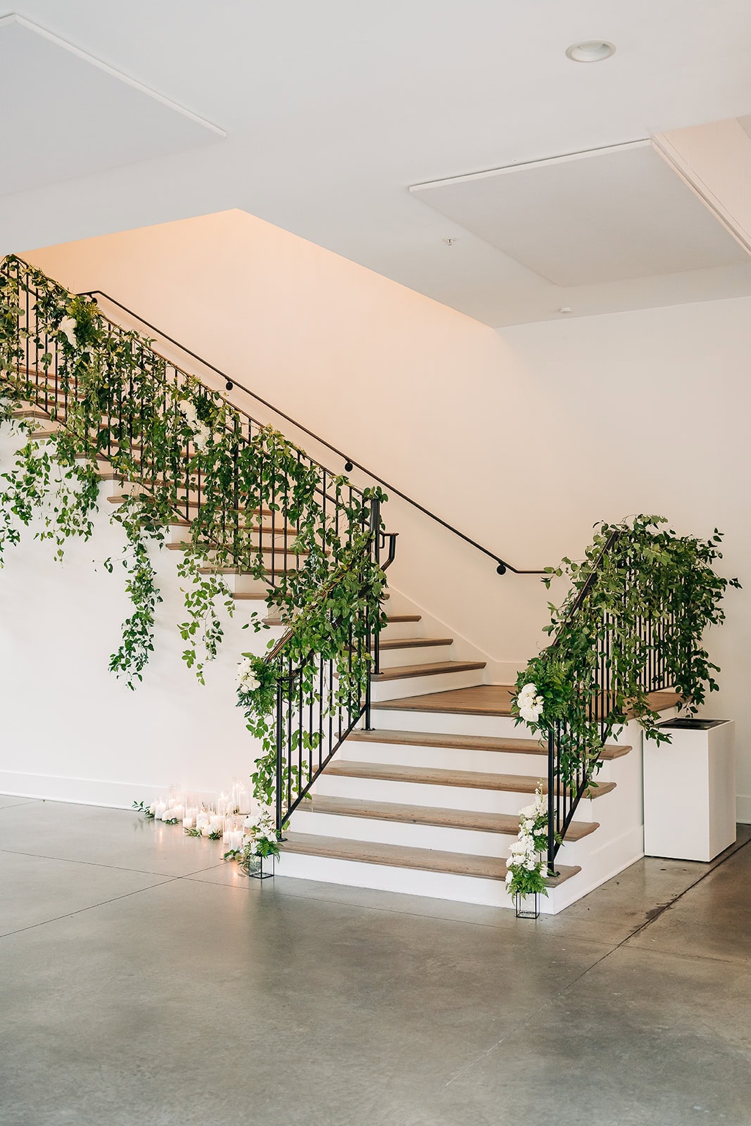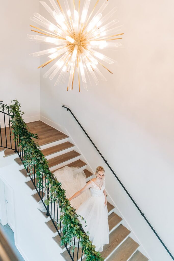A grand staircase offers dramatic first look moments. Wide shots of couples look editorial in this spot. Moreover, it’s great for bridal party group photos.